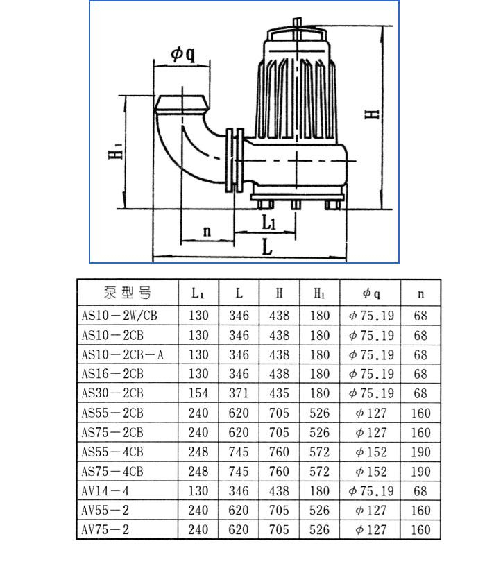 五、AS/AV型潛水式排污泵性能參數(shù)選型表