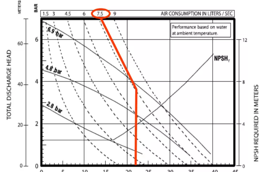 此例中的耗氣量就在7.5 lps 左右