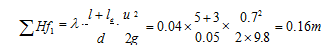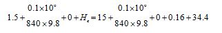 u0 為 0-0 平面流速,取值為零,u1 為 1-1 平面流速,取值也為零,管路損失為進(jìn)出口管路阻力損失之和,根據(jù)已知得