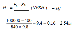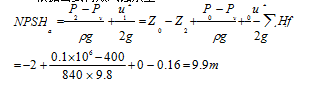 取 0.5m 的余量,則有效汽蝕余量NPSHa=9.4m。