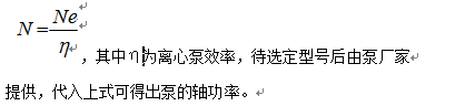 根據(jù)以上數(shù)據(jù)從泵廠J樣本中選取合適型號ISGB防爆管道離心泵, 參照泵的性能曲線,使泵的操作參數(shù)位于高效區(qū)內(nèi),查出泵的效率從而計(jì)算軸功率。